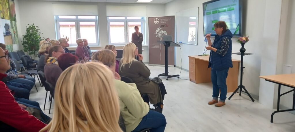 Agroresursu un ekonomikas institūta “Priekuļu pētniecības centrs” ir vieta, kur demonstrējumos zinātne satiekas ar praksi. Lauka izmēģinājumi un selekcijas darbs Priekuļos tiek veikti jau 110 gadus, šobrīd gan bioloģiskajā, gan integrētajā audzēšanas sistēmā, pielietojot inovatīvas metodes. Ar Pētniecības centra darbību, pētījumiem, projektiem iepazīstināja centra vadītāja Baiba Palse un vadošā pētniece Līvija Zariņa. Ieskatījāmies telpās, kur notiek darbs pie jaunu šķirņu izveides, apmeklējām kartupeļu glabātuvi un redzējām jaunu kartupeļu šķirni, kurai vēl nav iedots oficiāls nosaukums. Saņēmām atbildes uz dalībnieku uzdotajiem jautājumiem un devāmies tālāk.