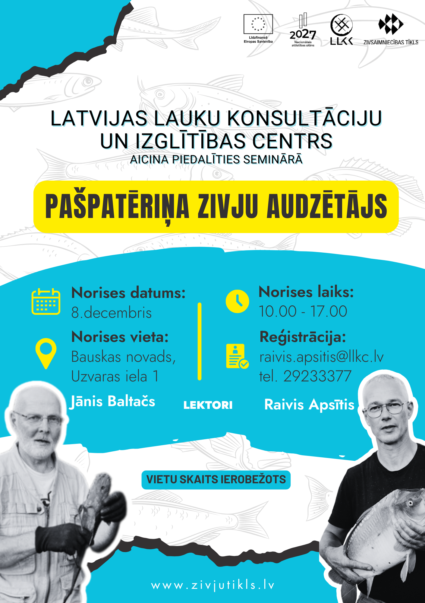 Dalībnieki iegūs praktiskus padomus par efektīvu dīķa uzturēšanu un risinājumiem, kas palīdz nodrošināt labu zivju augšanu vienas sezonas laikā. Seminārs sniegs vērtīgas zināšanas ikvienam, kurš vēlas pārliecinoši uzsākt vai pilnveidot savu dīķsaimniecību.